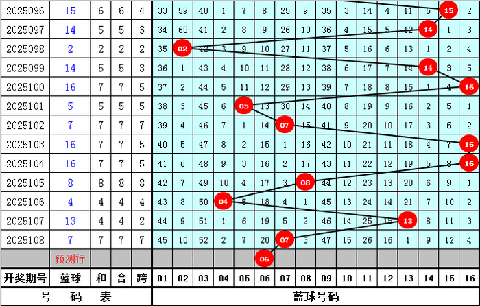 蓝球分析:上期蓝球为小 号07,最近10期大小蓝球号码分别出现5次,走势相当,本期看好小 号蓝球,参考蓝球06。