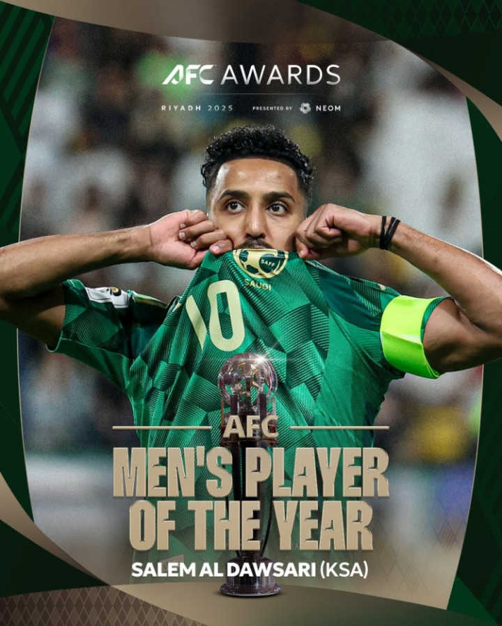 直播吧10月17日讯官方消息,利雅得新月34岁边锋萨利姆-多萨里当选2025年亚足联最佳球员。