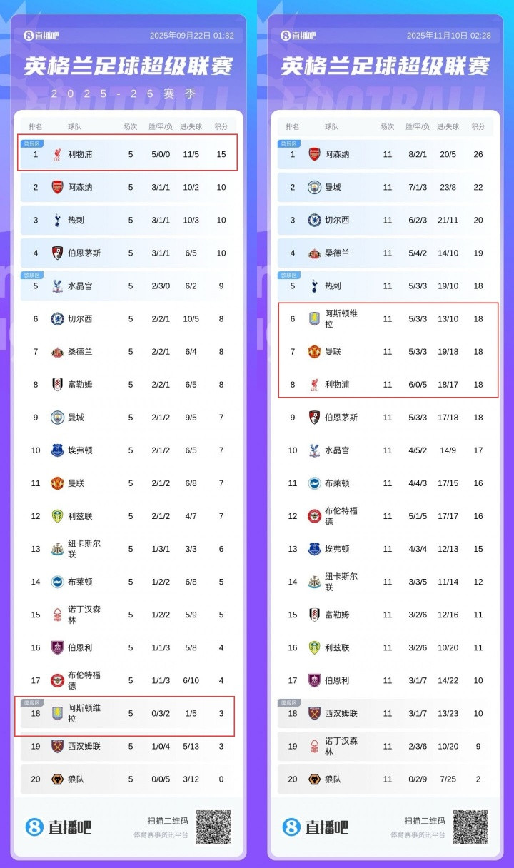 最有意思的便是,利物浦唯一一胜是赢维拉,维拉唯一一负是败利物浦。