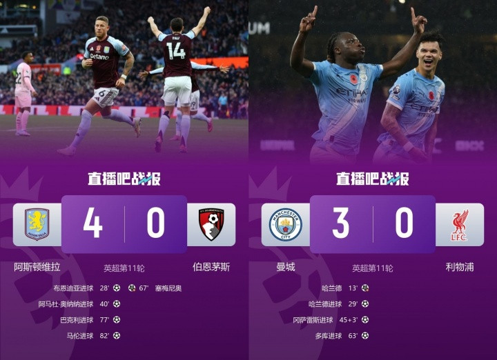 阿斯顿维拉本轮4-0大胜伯恩茅斯,近6轮5胜1负,豪取15分,积分从第18名暴涨至英超第6。