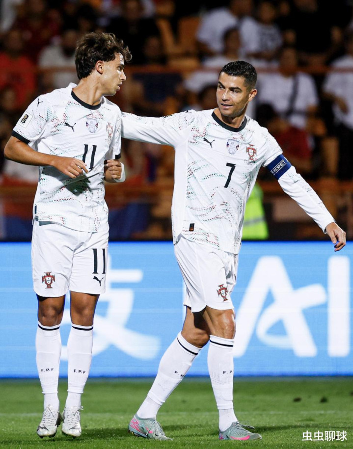 试想一下,世界杯赛场上40岁的C罗依旧是锋线旗帜,而26岁的菲利克斯正值当打之年,两人如果能擦出火花,葡萄牙冲击世界杯又多了一个重要的筹码,要知道,C罗与菲利克斯可是天天在一起踢球啊。