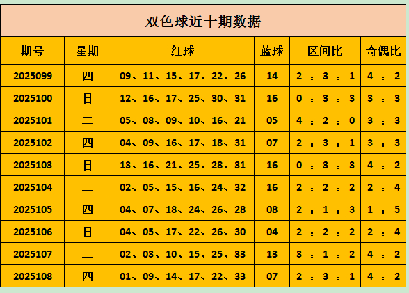 双色球上期开出奖号:01 09 14 17 22 33+07,区间比2:3:1,奇偶4:2。
