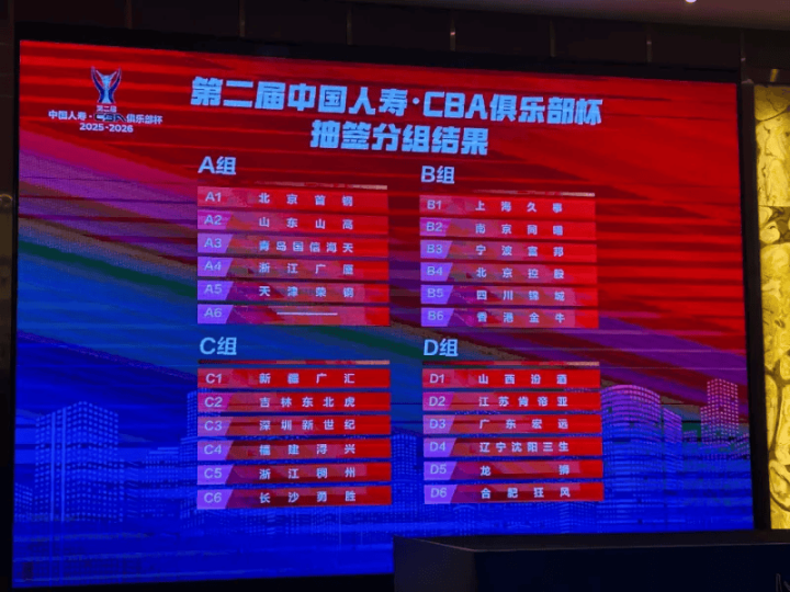 虎扑10月17日讯今日,第二届CBA俱乐部杯抽签分组结果已经出炉。