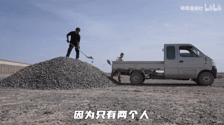 这些20吨重的黑色石块,全是由人工一铲接一铲地装载至车辆,又同样一铲接一铲地卸载而下。