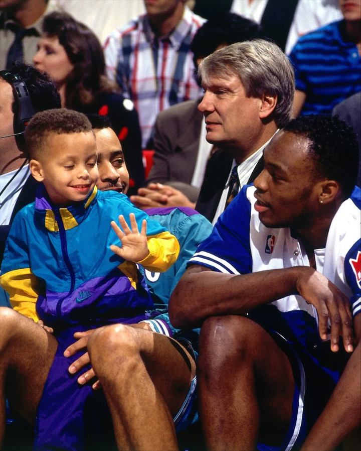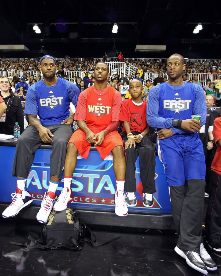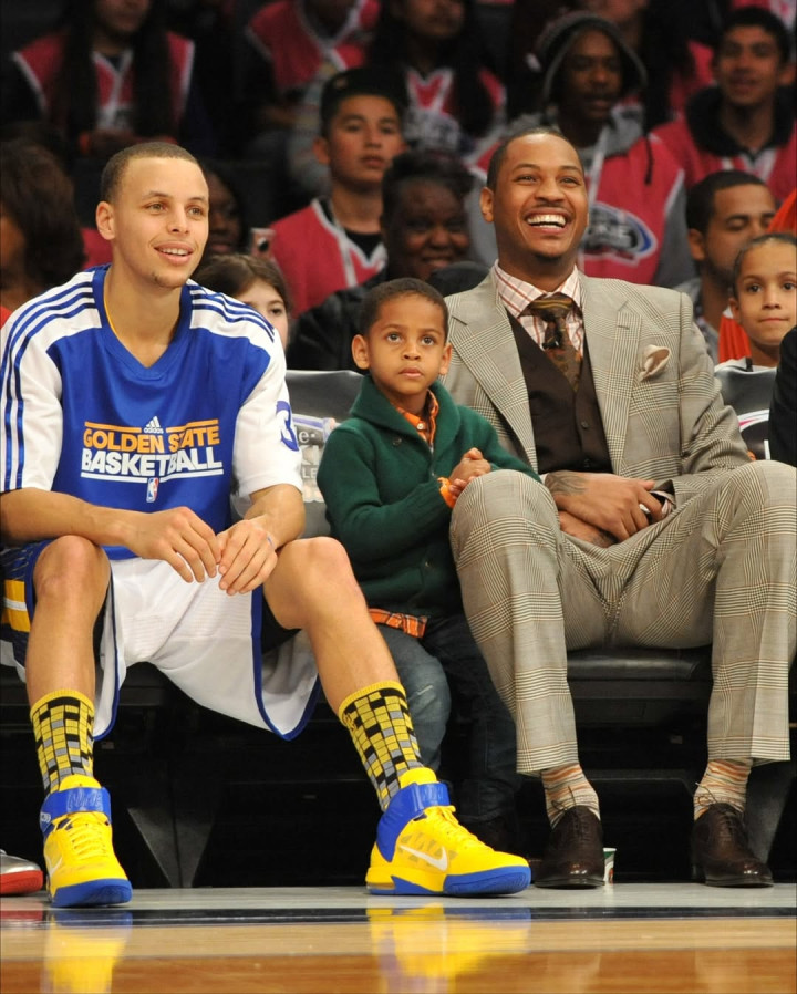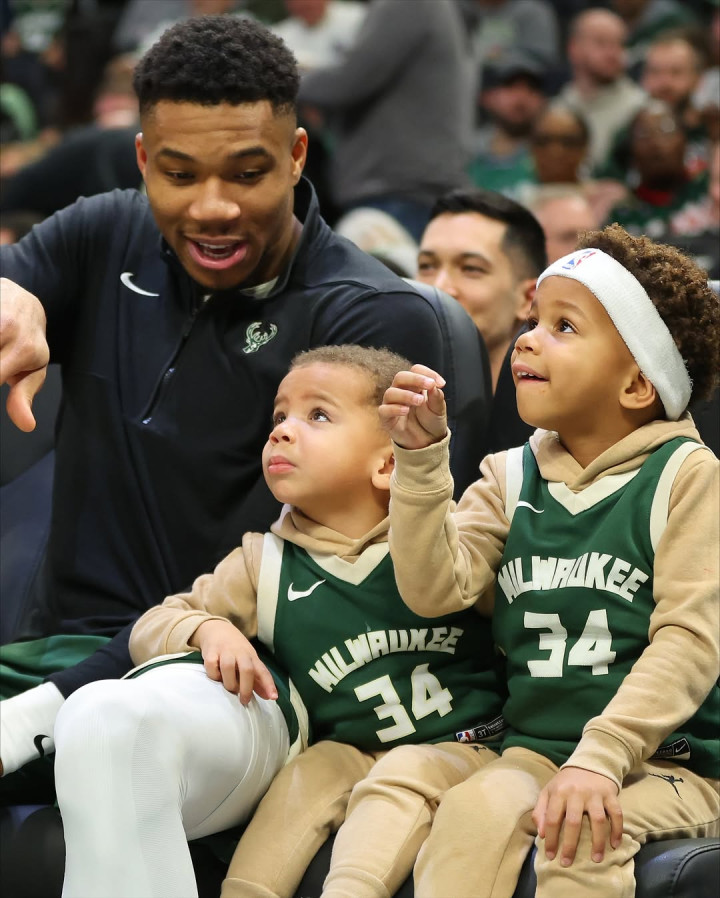 图中包括勒布朗-詹姆斯,杰森-塔图姆,戴尔-库里,卡梅罗-安东尼,扬尼斯-阿德托昆博,克里斯-保罗,德里克-罗斯,达米安-利拉德和以赛亚-哈尔滕施泰因以及他们的孩子们,还包括幼年时期的布朗尼-詹姆斯和斯蒂芬-库里。
