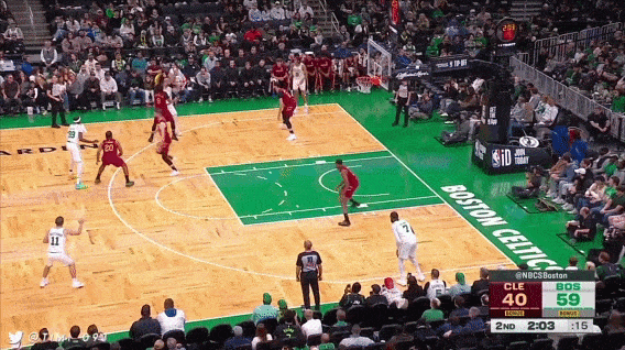 如果不在三分线外拉开空间,他有时候会游荡在幽灵区,或是突然空切,接应队友的突破,在篮下完成终结。